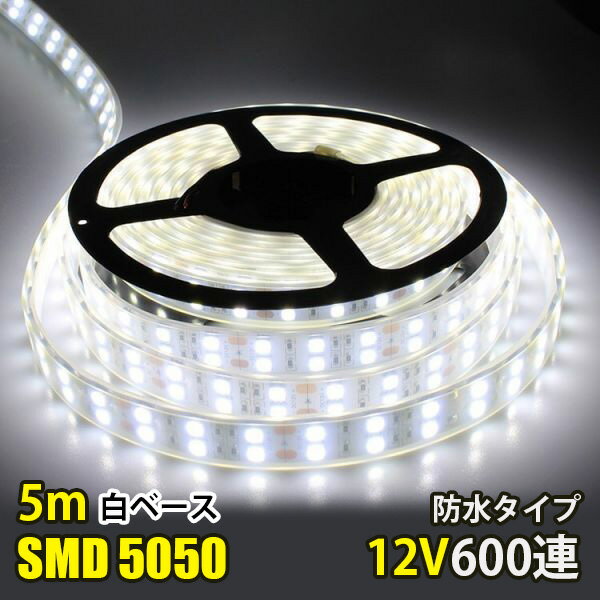 LEDテープライト 完全防水 DC12V SMD5050 600連 二列式 カバー付き 5M LEDテープ 白色 ホワイト 船舶 照明 蛍光灯led間接照明/屋外照明/