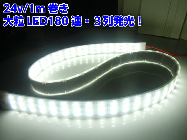 24V/トラック・船舶・漁船用/爆光3列(180連球)基盤!カバー付LEDテープライト蛍光灯・航海灯/1M巻き