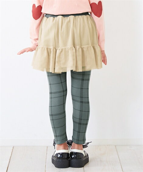 シーズンムード漂うこっくりカラーのチェック柄スパッツに、ガーリーなチュールをドッキング♪