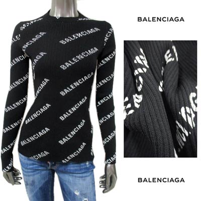 バレンシアガ BALENCIAGA レディース トップス ロンT 長袖 ロゴ 総柄BALENCIAGA斜線ロゴプリント付きタイトロングTシャツ ブラック 570844 T6140 1070 (R137500) 02S 2020年春夏新作【送料無料】 【smtb-TK】