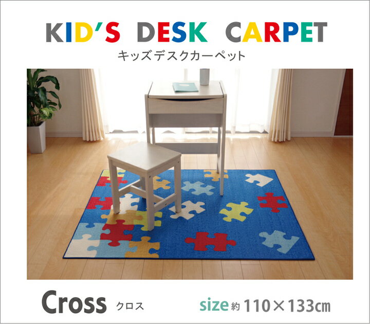 デスクカーペット 男の子 パズル柄 『クロス』 ブルー 約110×133cm サイズ 約110×133cm 組成 表地:ポリエステル100% 裏地:ポリエステル100%(不織布) 原産国 中国製 商品説明 ■学習机用のデスクカーペットです。